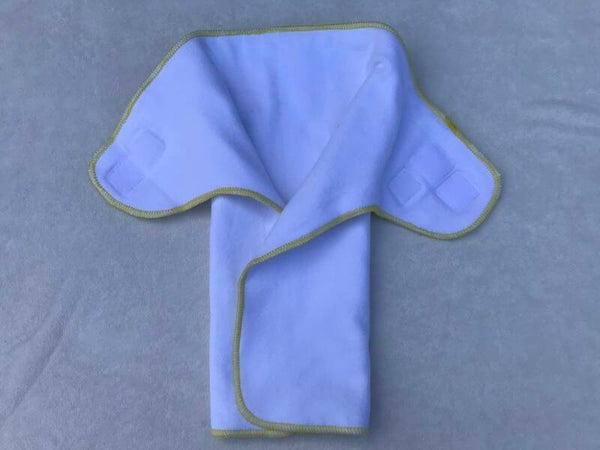 La préplate est un absorbant facile à plier avec une très bonne absorption grace à ses 3 épaisseurs soient 9 épaisseurs au centre une fois pliée. Elle est cousue en french terry de coton, une matière souple et confortable et qui absorbe bien dès le premiers lavage.