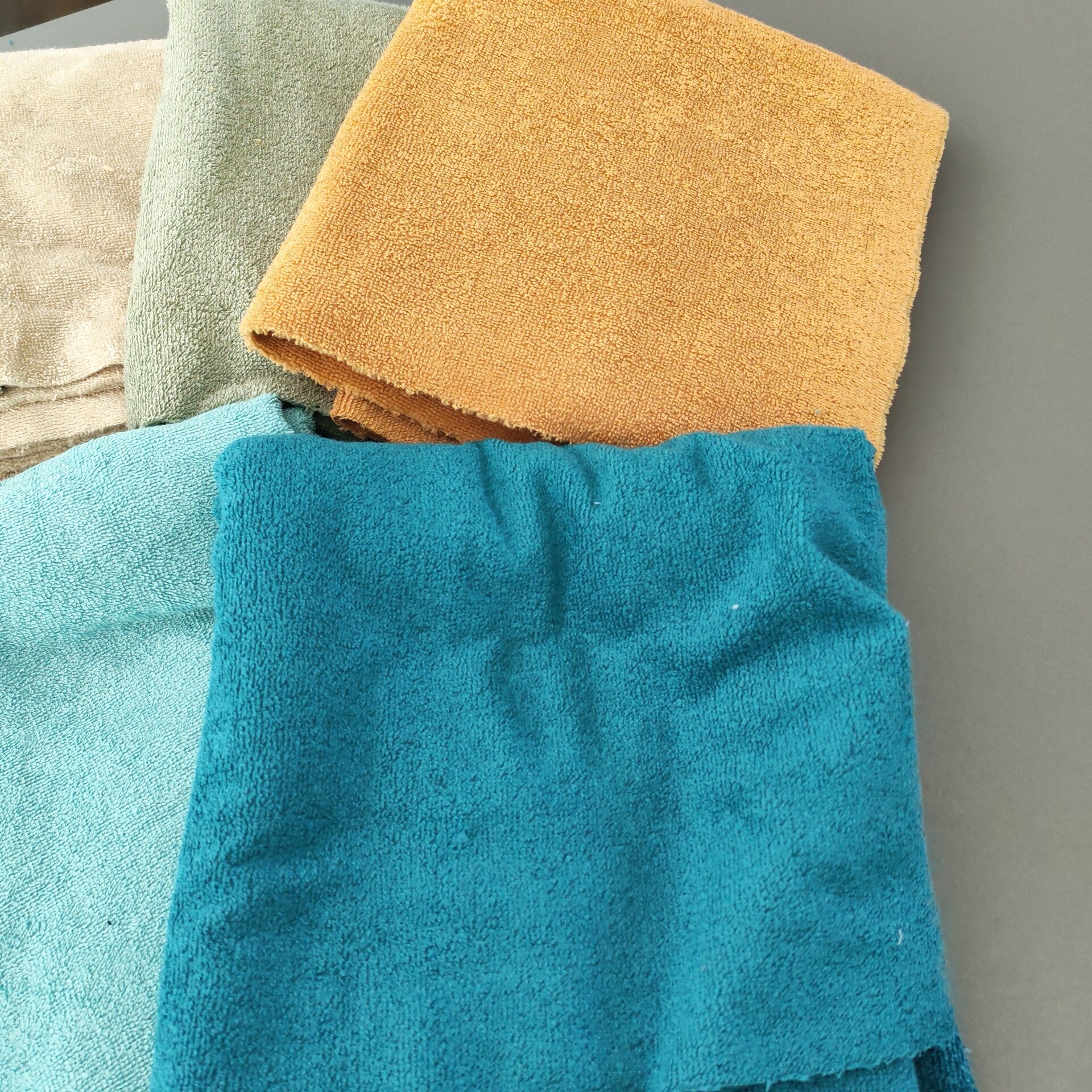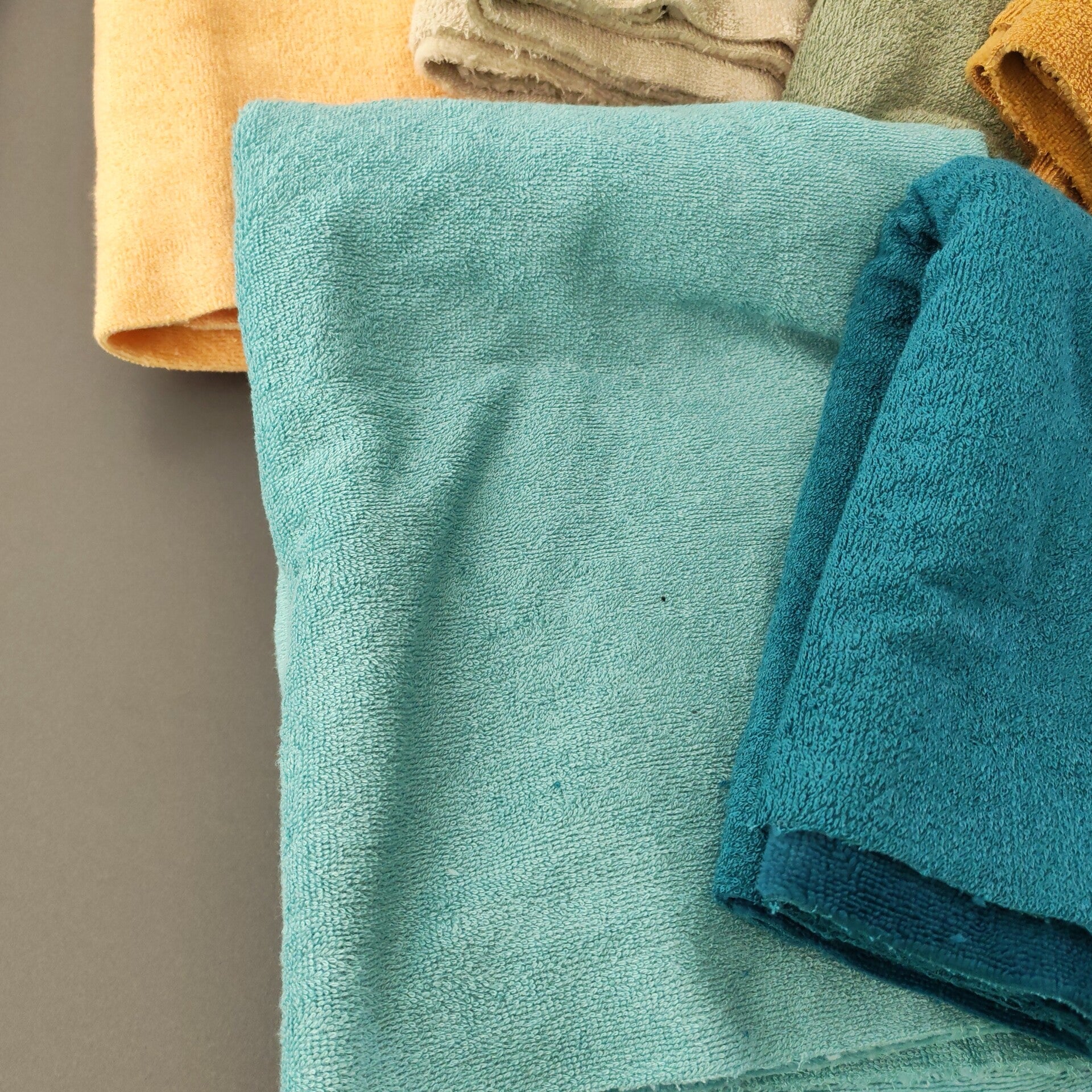 Tissu micro éponge de bambou avec un coté type serviette et l'autre coté super doux et agréable au toucher, au contact avec la peau. Il est aussi absorbant. C'est l'idéal pour faire des articles de bain de type poncho de bain, de plage, de piscine, peignoir, cape de bain, serviette pour les cheveux, SHL, lingettes etc. Tissu oekotex
